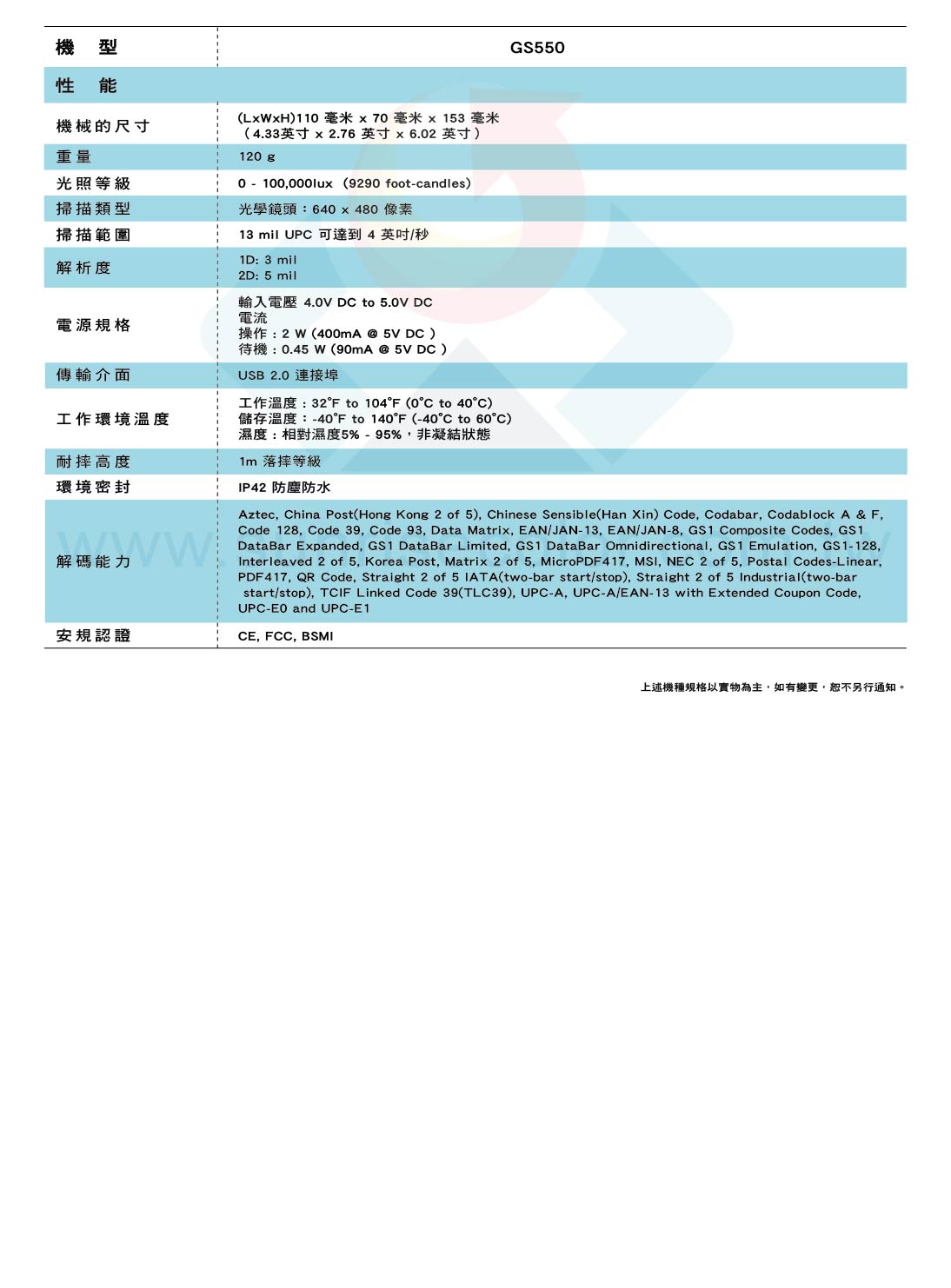 • 支援所有標準一維條碼以及主流的二維條碼,不論是在紙面或電子螢幕上皆能精確快速的判讀條碼內容