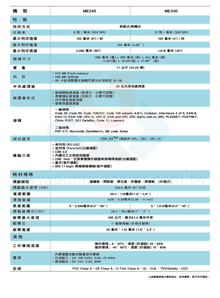 高解析列印需求可選擇TSC ME340,其提供4英吋列印寬度、300 DPI解析度、每秒4 英吋列印速度與8英吋內部紙卷外徑。
