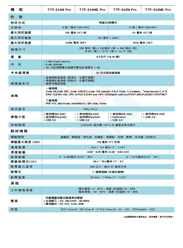 TSC TTP-244M Pro,每秒4英吋列印速度(203 dpi);提供串列埠與USB兩種通訊介面;具備自動測紙功能,節省您每次開機使用時的作業時間與紙張成本。TSC TTP-244M Pro是以商業級條碼機成本達成工業級效能的最佳選擇。